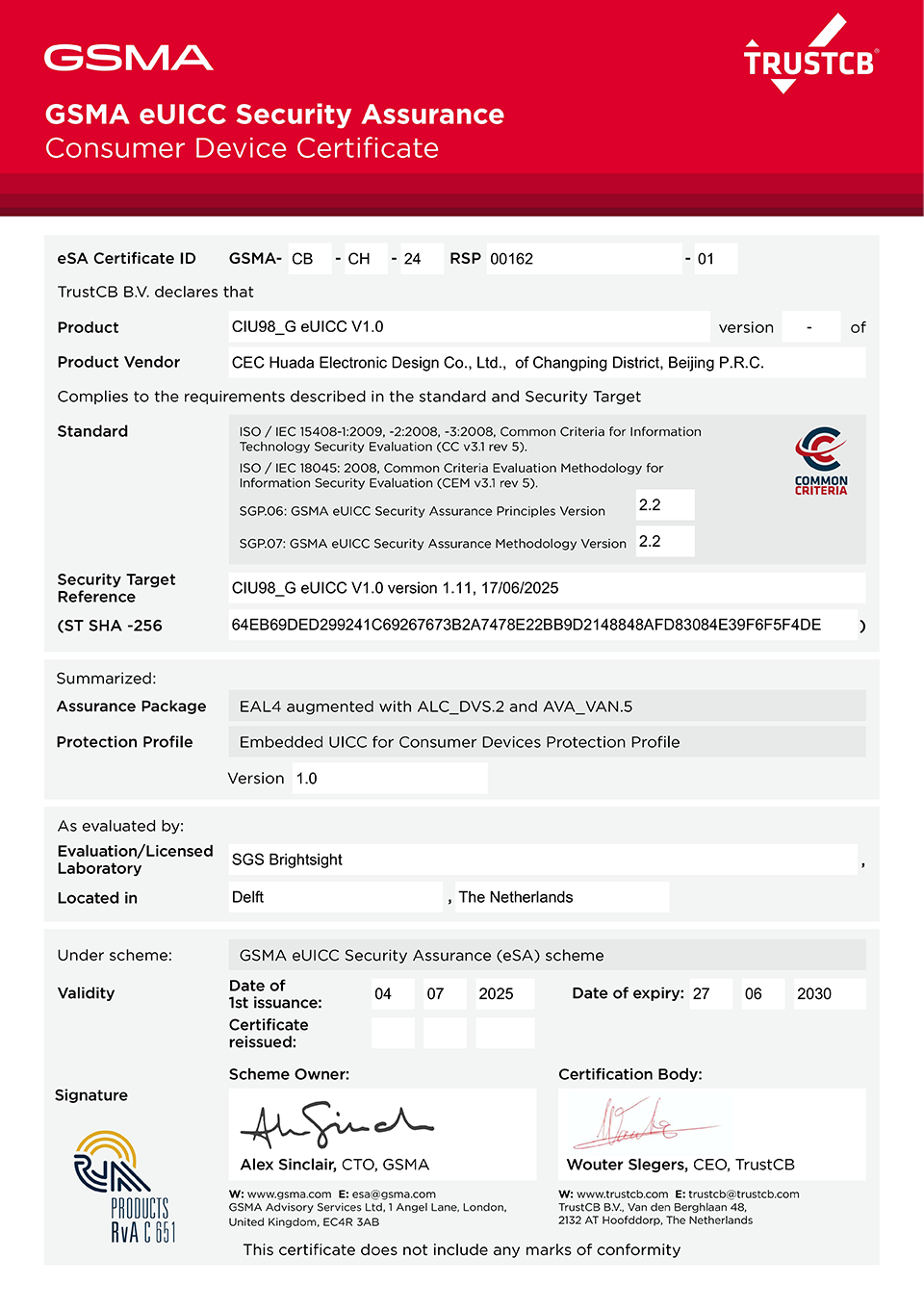 HED and Valid, a leading provider of eSIM interoperable services, jointly announced that their co-developed SGP.22 V2.5-eSIM Operating System (OS) has fully passed the GSMA eUICC Security Assurance (eSA) certification. This major technological breakthrough will empower device manufacturers worldwide to deliver seamless and secure eSIM experiences to users.